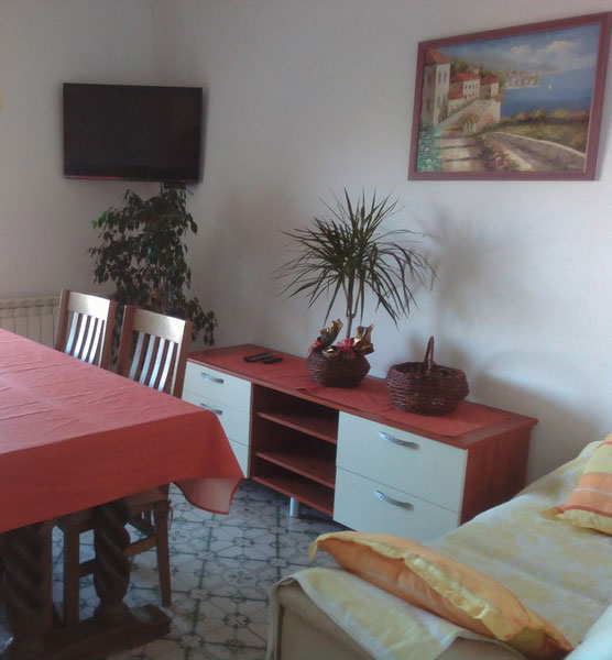 3x double bedroom, bathroom with shower, refrigerator, kitchen equipment, oven, air conditioning, satellite TV, WIFI internet, large terrace overlooking the sea.Apartman has a separate entrance and is situated on the 1st floor of the house.